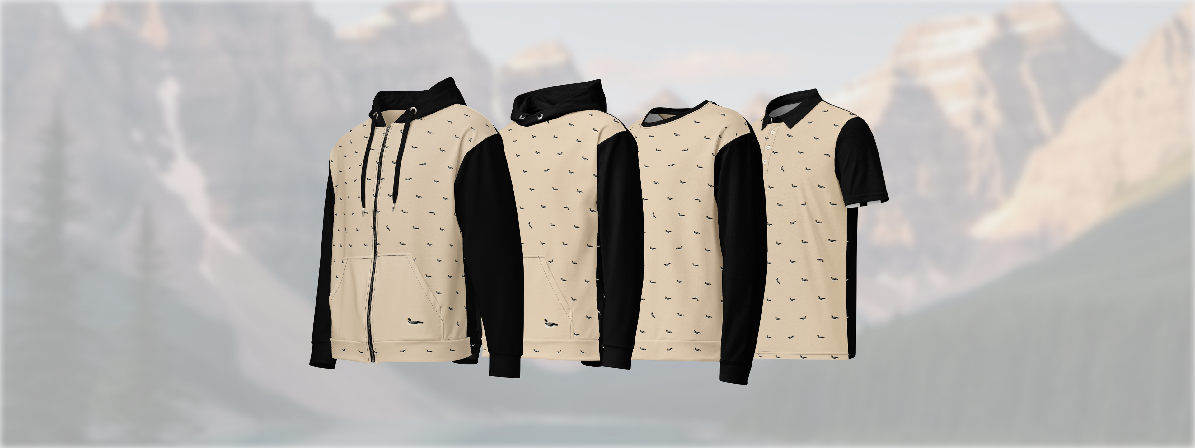 Honestly... our best design! The black, the tan, the loons, the patterns. Plus we have a treasure hunt included. On each piece of clothing we placed an image of a Lucky Canadian Loonie!